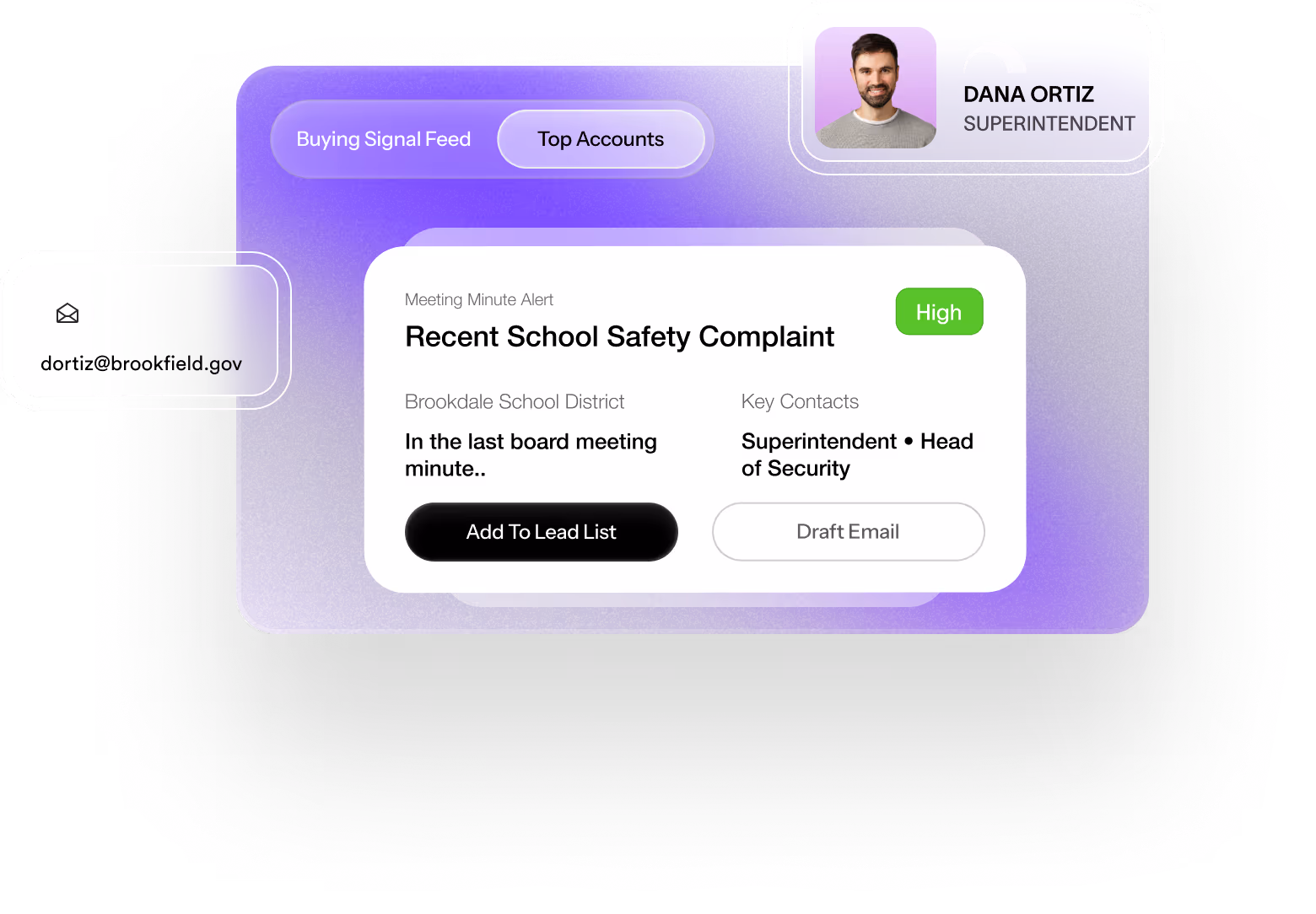 Starbridge tracks key data—strategic plans, contract expirations, budgets, board meeting notes, grants, and more— to send you warm leads with who to contact and what to say