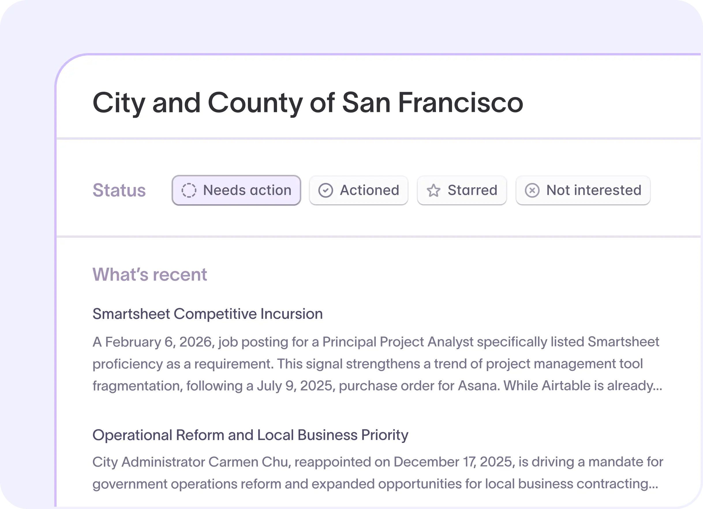 Rank accounts based on budgets, board meetings, contract expirations, and more to engage at the right time.